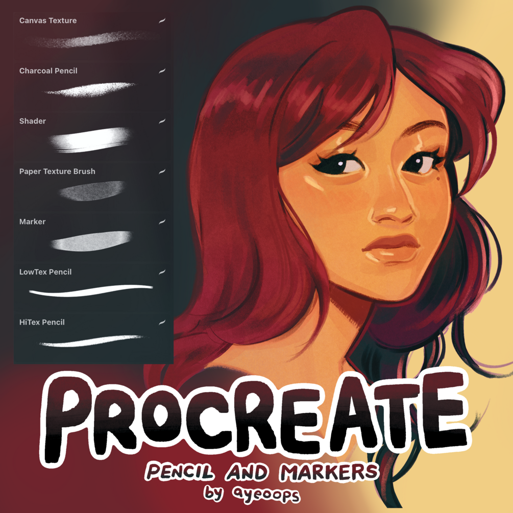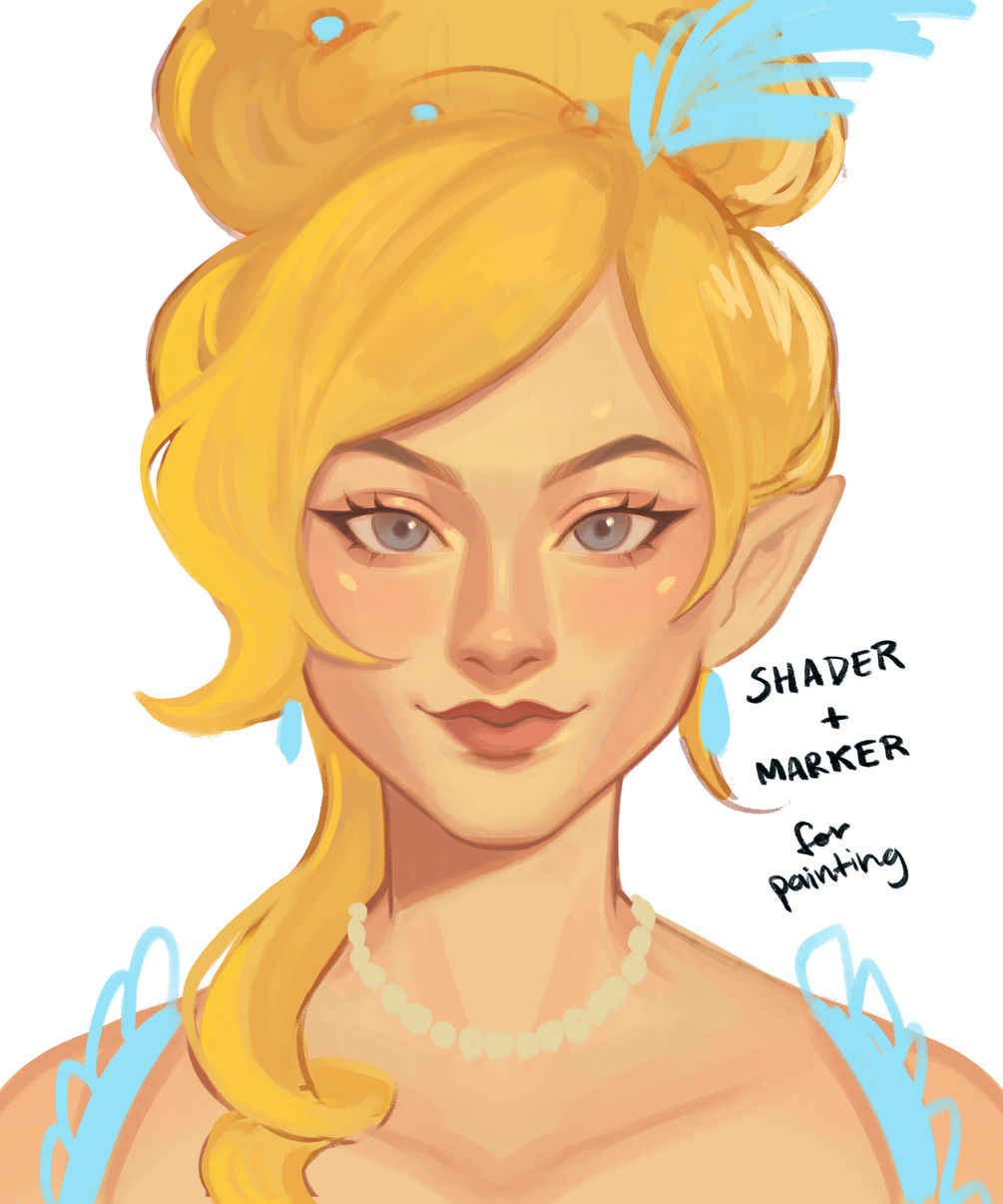 - Marker - for color blocking and shading. a little translucent so may need multiple layers if you want a more opaque layer. keep in mind, being more opaque will get rid of the texture which can be re-added with the texture brushes